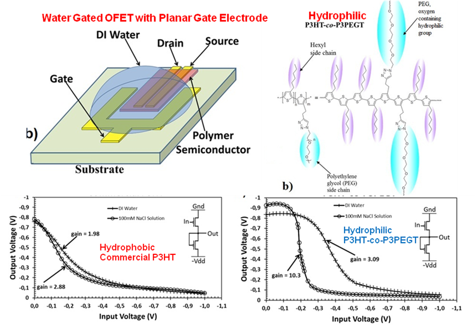 “Fabrication of a planar water gated organic field effect transistor using a hydrophilic polythiophene for improved digital inverter performance”