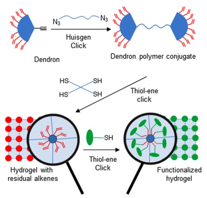 ‘Synthesis and Functionalization of Dendron-Polymer Conjugate Based Hydrogels via Sequential Thiol-Ene “Click” Reactions.’