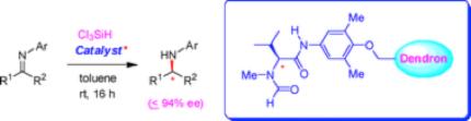 “Dendron anchored organocatalysts: the asymmetricreduction of imines with trichlorosilane, catalysed by an amino acid-derivedformamide appended to a dendron” Figlus, M.; D.; Caldwell, S. T.; Walas, D.;Yesilbag, G.; Cooke, G.; Kocovsky, P.; Malkov, A. V.; Sanyal, A. Organic and Biomolecular Chemistry 2010, 8, 137-141.